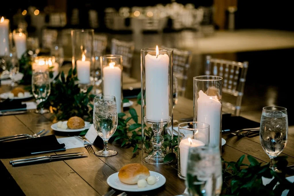 On top of that, when considering what kind of floral arrangements you want, considering your venue and the space available for the décor is an important component in making sure your designs are to scale. For example, a smaller and more intimate venue calls for smaller floral arrangements like a variety of bud vases or small greenery arrangements. In contrast, larger venues with high ceilings would look better with tall arrangements such as elevated floral arrangements or statement floral centerpieces.